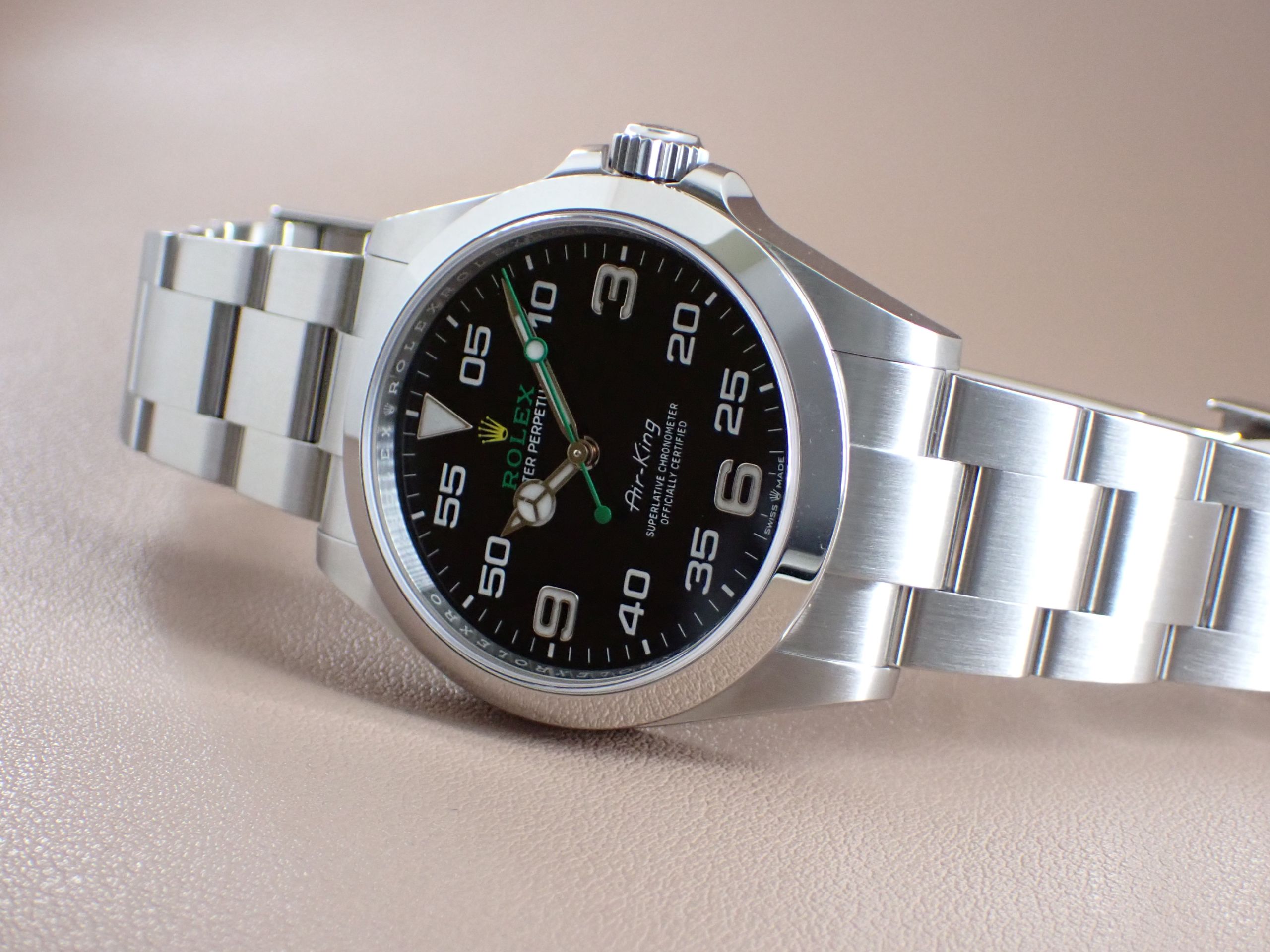 2022年より製造されている現行型『エアキング Ref.126900』です。 先代モデル(Ref.116900)にはなかったリューズガードが付き、ダイヤルも 一部マイナーチェンジされております。ブレスレットの幅も太くなりより一層 洗練されたデザインになりました。ムーヴメントは、Cal.3230を搭載しており 70時間のパワーリザーブを誇ります。ダイヤルのロゴと針にロレックスカラーの グリーンが採用されているのもポイントの一つですね。 現在、クォークでは『909 大還元祭』と題したセールを開催しております! 皆様からのお問い合わせ、ご試着を心よりお待ちしております! |
